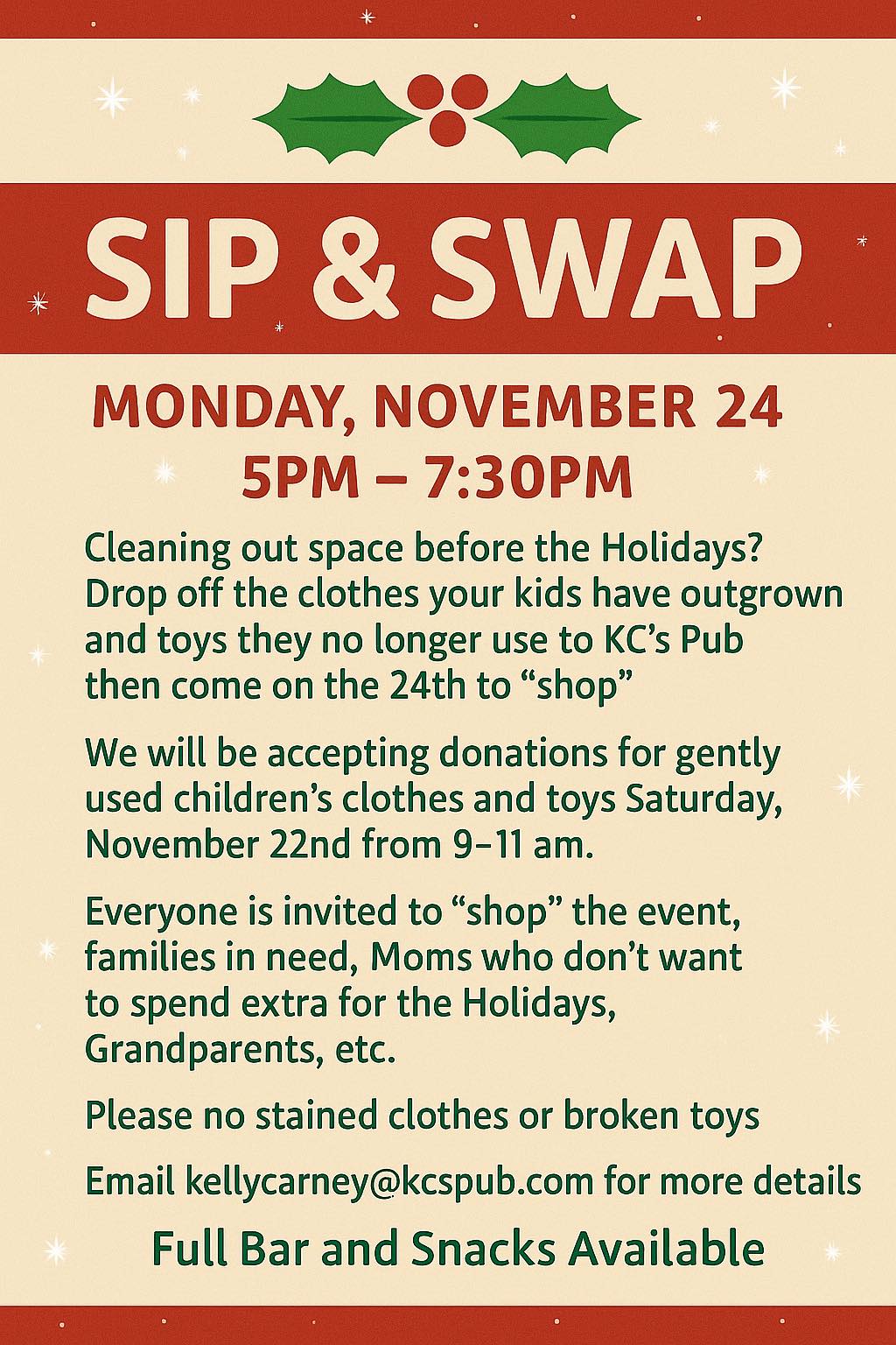 KC's Pub Sip & Swap